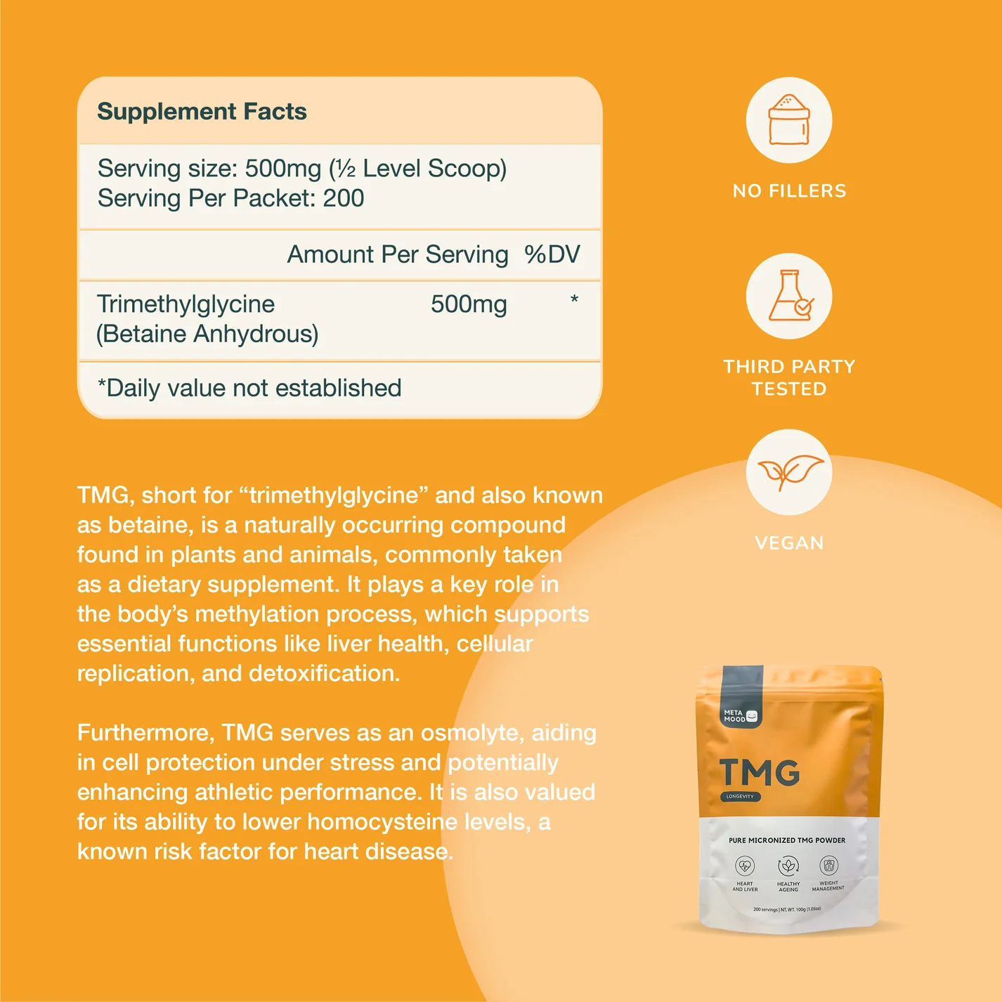 Support your body’s methylation, detox, and energy with pure, easy-mix TMG Trimethylglycine.
